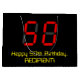 This silly and fun birthday themed gift bag design features a large number "50" having a red seven segment digital display style look, along with the message "Happy 50th Birthday," and a customisable name in nerdy yellow text, on a black coloured background. A personalised gift bag like this might be used when wrapping gifts or presents being given to celebrate somebody’s fiftieth birthday. [~Z0000389]