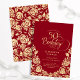 Red gold elegant 50th birthday party invitation. Classy design featuring roses, faux gold foil and typography script font. Trendy invite card perfect for a stylish female bday celebration. Personalise with your own details. Can be customised to any age. Printed Zazzle invitations or instant download digital printable template.