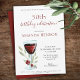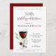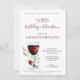 50th Birthday Red Wine Watercolor Party Invitation. 50th birthday party invitation for her or him. Invitation with watercolor red wine glass, roses and twigs on a white background. The text is fully customisable - personalise it with your name, any age - 30th 40th 50th 60th 70th 80th 90th 100th, date and time, location and RSVP. You can use the invite for the surprise birthday party or erase the surprise text.