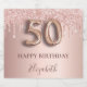 Elegant, classic, glamorous and girly for a 50th birthday party. Rose gold and blush pink, gradient background. Decorated with rose gold, pink faux glitter drips, paint dripping look. Personalize and add a name. With the text: Happy Birthday. The text is written with a modern dark rose colored hand lettered style script. Number 50 is written with a balloon style font.