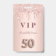 50th birthday rose gold glitter drips pink glam ID badge