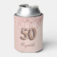 Elegant, classic, glamourous and girly for a 50th birthday party. Rose gold and blush pink, gradient background. Decorated with rose gold, pink faux glitter drips, paint dripping look. Personalise and add a name. The name is written with a modern dark rose coloured hand lettered style script. Number 50 is written with a balloon style font.
