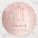 Girly and feminine confetti for a 50th birthday party table setting. A rose gold faux metallic, foil looking background decorated with faux rose gold glitter drips. Personalise and add her name/text. Dark rose gold coloured letters. Some confetti chips with name and date, others with number 50 written with a balloon style fonts, and with the text Happy Birthday.