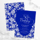 Royal blue silver elegant 50th birthday party invitation. Classy design featuring roses, faux silver foil and typography script font. Trendy invite card perfect for a stylish female bday celebration. Personalise with your own details. Can be customised to any age. Printed Zazzle invitations or instant download digital printable template.