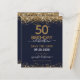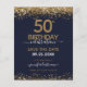 Elegant Faux gold glitter with shimmering confetti highlights on the top and bottom border. All text is adjustable and easy to change for your own party needs. Great elegant 50th birthday template design.