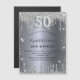A modern, stylish and glamourous invitation magnet for a 50th birthday party. A faux silver looking background, decorated with glitter dust. Personalise and add your name and party details. Number 50 is written with a balloon style font, script.