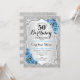 50th Birthday - Silver Stripes Icy Blue Roses Invitation