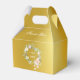 Elegant floral 50th golden wedding anniversary favour box featuring a pretty roses garland with personalised names and special date set in chic typography on a gold background. You can also personalise with your own thank you message under the lid. A perfect way to say thank you to your guests! Designed by Thisisnotme©