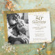 A stylish 50th golden wedding anniversary surprise party invitation featuring delicate gold hearts confetti, you can personalise with your special photo and fifty years golden anniversary celebration information in chic lettering. Designed by Thisisnotme©