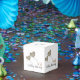Personalized 50th golden wedding anniversary gift/ favor box with heart balloons.
