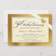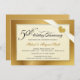 Create your own personalised 50th Wedding Anniversary Party Invitations -- Beautiful gold-tone metallic and ivory parchment look with [printed] white ribbon and golden gemstone bling heart. Classic engraved-look typography with fancy vintage style swash script lettering -- Elegant, affordable luxury, and uniquely customised for you! Just add the names, date, and details for your special milestone anniversary celebration. **NOTE: All elements of this design are part of the PRINTED image -- the ribbon, jewelled brooch, and frame are NOT raised, embossed, or presented as real embellishments. Sized for small invitation cards. Click "Customise It" to change the size, paper options, or font choices. Other sizes and styles available in gallery. © Teri Francis. Coordinating sets with matching postage and thank you cards available upon request.