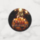 Pictured is a Birthday cake with candles and sparklers with a happy Birthday logo