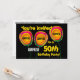 This design with its festive balloons and its bold and colourful lettering is a fun way to invite folks to a SURPRISE birthday celebration. Text on back of invitation is totally customisable. You can experiment with different paper types by clicking on the "Invitation Options" tab on the upper right hand corner. I recommend the ice hued or gold metallic paper which will give your invitation a festive shimmer and shine. Matching stamps are also available.