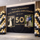 Celebrate 50 amazing years of love with this personalised 50th wedding anniversary banner! Whether you're honouring grandparents, parents, or any special couple, this elegant black and gold backdrop is the perfect way to showcase their beautiful journey together. Featuring a before-and-after photo design, this banner makes a stunning addition to any anniversary party, vow renewal, or family gathering. Use it as a welcome sign, party backdrop, or wall decor to add a special touch to the celebration. Perfect for their anniversary day, surprise party, or even as a thoughtful gift, this custom keepsake is a heartfelt way to honour their love story and make their golden anniversary truly unforgettable!