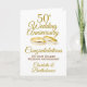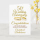 A fabulous 50th wedding anniversary congratulations card. This gold wedding ring themed card is the perfect way to say congrats someone in style on their golden wedding anniversary. Personalise with custom names and message.
