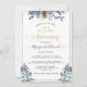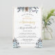 Exquisite 25th (or other) wedding anniversary invitation with gold details and navy, pale blue and grey hand painted watercolor floral details. Ability to change anniversary number to suit your needs. Use of modern elegant Script and block typography. Back in elegant navy blue tone and central captivating floral detail. Coordinating products available. Part of our "Rustic Blue Mountains" wedding and events collection.
