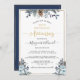 50th Wedding Anniversary, Gold, Navy Blue Floral Invitation