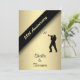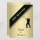 Elegant 50th Anniversary Party Invitations with script letterpress style typography on gold - This unique golden invitation is accented with a trumpet player and music notes. Add the names, date, and details. A beautiful invitation that can be easily customised for many special occasions and happy milestone celebrations -- The colour is perfect for a Golden Anniversary but the text can be used for any anniversary party, birthday party, wedding, save the date, exclusive affair or event.