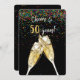 Champagne toast on black with falling confetti for 50th wedding anniversary party invite.