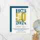 A modern and striking 50th wedding anniversary party thank you card. This special gold wedding card consists of year of marriage and curent date in blue typography - with the 50 highlighted in a gold effect font. Add a message for a custom 50th anniversary party gift thank you.