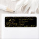 The golden wedding 50th anniversary return address label with your details is set in elegant gold text with a gold hearts on a black background. Designed by Thisisnotme©