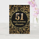 51st Birthday Black and Gold Floral Pattern Card