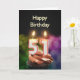 A birthday cake with candles. The candles are made up of the number 51, for a 51st birthday. A birthday card suitable for everybody.