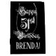 This fancy and lavish birthday-themed gift bag design features the message “Happy 51st Birthday,” in formal script style text, on a black coloured background. It also has an editable recipient name. A giftbag like this might be a respectable way of wrapping a birthday present or gift being given to somebody who is celebrating their 51st birthday. [~Z0000557]