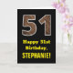 51st Birthday: Name, Faux Wood Grain Pattern "51" Card