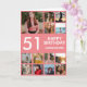 51st Birthday Photo Collage 13 Photos Pink & White Card