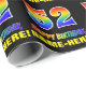 This colourful, fun, and cheerful birthday wrapping paper design features a large number "52" and the message "HAPPY BIRTHDAY,", both having a rainbow spectrum gradient inspired pattern colouring, along with a bold yellow editable recipient name. The background is coloured black. Fun birthday themed wrapping paper like this could be used to wrap a gift or present being given to somebody who is celebrating their fifty second birthday. [~Z0000475]