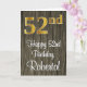 52nd Birthday: Elegant Faux Gold Look #, Faux Wood Card