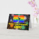 The front of this bold and vibrant birthday-themed greeting card design features a large number “52” having a multicolored rainbow spectrum inspired gradient pattern. It also features the message “HAPPY 52nd BIRTHDAY,”, and a custom recipient name. The background of the front has an eye-catching, colourful pattern that resembles bursting celebratory fireworks. The inside features an editable birthday greeting message, or could perhaps be cleared and left blank if a message is to be written by hand instead. A fun, personalised birthday greeting card like this might be sent to celebrate somebody’s fifty-second birthday. [~Z0000619]