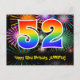 52nd Birthday – Fun Fireworks Pattern + Rainbow 52 Postcard