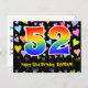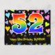 The front of this loving, colourful, and fun birthday-themed postcard design features a large number "52" having a rainbow spectrum gradient inspired pattern. It also features the message "Happy 52nd Birthday,", and a customisable recipient name. The front additionally features a vibrant and colourful pattern of loving hearts. The back features a customisable birthday greeting message, or could perhaps be cleared and left blank if a message is to be written by hand instead. A personalised birthday postcard like this might be a fun way to send a message celebrating somebody’s fifty second birthday. Postcards like this might also be used to invite guests to a birthday celebration or party being held for somebody who is turning 52 years old. [~Z0000448]