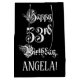 This luxurious and elegant birthday-themed gift bag design features the message “Happy 53rd Birthday,” in formal script style text, on a black coloured background. It also has a custom recipient name. An ornate birthday themed giftbag like this might be a respectable way to wrap a gift or present being given to somebody who is celebrating their fifty third birthday. [~Z0000557]