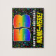 This upbeat and bold birthday jigsaw puzzle design features a large number “53” having a multicolored rainbow spectrum inspired gradient pattern. It also features the message “HAPPY 53rd BIRTHDAY,”, and an editable recipient name. The background features a joyful pattern of musical symbols and notes having a variety of colours and sizes. An exciting, customised birthday puzzle like this might be given in celebration of somebody’s fifty-third birthday. These might be more meaningful if that person is a singer, a musician, a songwriter, a composer, or a lover of music. [~Z0000608]