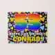 This vibrant and fun birthday-themed jigsaw puzzle design features a large number “53” with a multicolored rainbow spectrum inspired gradient pattern, along with the message “HAPPY 53rd BIRTHDAY,”, and a personalised recipient name. The background has a cheerful, colourful, loving hearts pattern. An eye-catching, editable birthday puzzle like this might be used to celebrate somebody’s fifty-third birthday. [~Z0000611]
