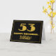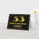 The front of this vintage appearance, 1920s-1930s style inspired birthday themed greeting card design features a large art deco appearance inspired number "53", the message "HAPPY BIRTHDAY,", a customizable name, and a border pattern consisting of lines. The front also features a black-colored background. The inside features a customizable birthday greeting message, or could perhaps be cleared and left blank if a message is to be written by hand instead. A personalized birthday card like this might be a fun way to acknowledge somebody’s fifty third birthday. [~Z0000506]