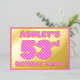 The front of this bold and fun fifty-third birthday party foil invitation/announcement card features a customisable name, a large number “53rd”, the message “BIRTHDAY PARTY!”, and a border, all featuring a girly light pink and dark pink stripes pattern. The back features personalised details about the event, such as the date, time, place, and any other useful information. Personalised invitations like these might be used to invite guests/attendees to a birthday party/gathering being held to honour somebody’s 53rd birthday. [~Z0000597]