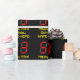 This silly and geeky birthday wrapping paper design features a large number "53" with a red seven segment digital display inspired appearance, along with the message "Happy 53rd Birthday," and an editable name in nerdy retro style yellow text, on a black coloured background. Wrapping paper like this might be used when giving a gift or present in honour of somebody’s fifty third birthday. [~Z0000387]