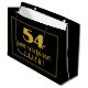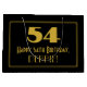 This vintage appearance Roaring Twenties look inspired birthday giftbag design features a large art deco style inspired number "54", the message "Happy 54th Birthday,", a personalised name, and a border pattern consisting of thin lines. The background is coloured black. A gift bag like this might be used when wrapping presents being given to somebody in celebration of their 54th birthday. [~Z0000501]