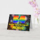 The front of this colourful and vibrant birthday-themed greeting card design features a large number “54” with a multicolored rainbow spectrum inspired gradient pattern, along with the message “HAPPY 54th BIRTHDAY,”, and a personalised recipient name. The background of the front has a joyful, colourful, bursting celebratory fireworks-inspired pattern. The inside has a personalised birthday greeting message, or could perhaps be cleared and left blank if a message is to be written by hand instead. A fun, customised birthday greeting card like this might be a fun way to send some birthday wishes to somebody who is celebrating their fifty-fourth birthday. [~Z0000619]