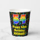 This cheerful and joyful music-themed birthday paper cup design features a large number “54” with a rainbow spectrum gradient inspired pattern, along with the message “Happy 54th Birthday,”, and a customisable name. The background features a vibrant and colourful pattern having music notes and symbols of various sizes and colours. Colourful, vibrant paper cups like this might be fun to use at a birthday celebration being held to honour somebody’s 54th birthday. [~Z0000541]