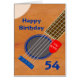 54th Birthday card for someone who loves the guitar. A close-up of a guitar with a plectrum tucked into the strings. On the plectrum are the words 'You Rock'. A birthday card for a musician who loves the guitar.