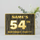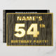 The front of this bold fifty-fourth birthday celebration/party foil invitation card features an editable name, a large number “54th”, the message “BIRTHDAY PARTY!”, and a border, all in foil. The background of the front features a rustic, yet elegant, faux wood grain appearance inspired pattern. The back features personalised details about the event, such as the date, time, location/venue, and any other useful information. Editable invitations like these might be used to invite attendees/guests to a birthday party being held to celebrate somebody’s 54th birthday. [~Z0000598]