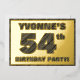 The front of this bold fifty-fourth birthday celebration/party foil invitation card features a personalised name, a large number “54th”, the message “BIRTHDAY PARTY!”, and a border, all featuring a rustic, yet elegant, faux wood grain appearance inspired pattern. The back features personalised details about the event, such as the date, time, venue, and any other important information. Editable invitations like these might be used to invite attendees to a birthday gathering being held to celebrate somebody’s 54th birthday. [~Z0000595]