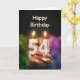 A birthday cup-cake with candles. The candles are made up of the number 54, for a 54th birthday. A birthday card suitable for everybody.