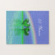 A fun gift idea, this puzzle has a beautiful 3d scenic image of emerald hearts floating on the water under a rainbow with customisable text.