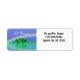 Return address labels with my image of two emerald green hearts floating on the water under a rainbow. Text says "55 Years" with a sample name and address.